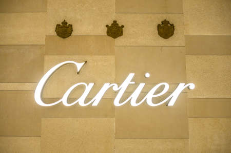 Bejing China 23.02.2019 Cartier store logo in Luxury shopping center in the heart of the city