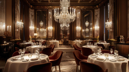 Elegant Evening Dining in a Luxurious Restaurant With Chandeliers