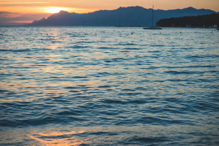 Sea waves and ripples at sunset background