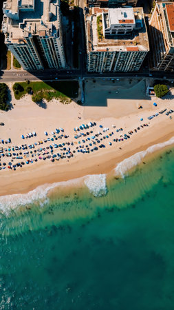 city beach aerial sunset. sea vacation. Generate AI