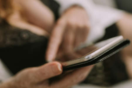woman in sexy clothes with mobile phone