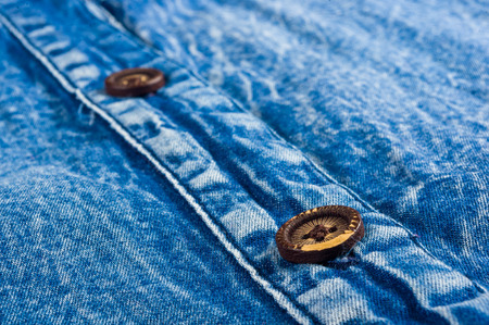 Blue washed faded jeans texture with seams, clasps, buttons and rivets, clothing items, macro, close-up