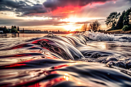 Rapid hydroelectric power generation sprays beauty in nature liquid motion generated by artificial intelligence