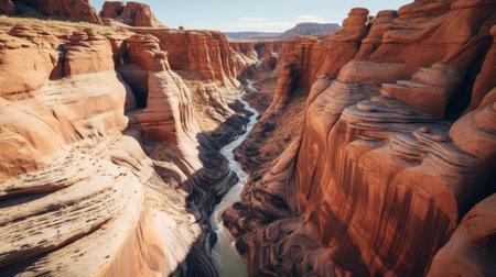 AI Generated. Desert Canyon System A deep narrow canyon system carved out by a