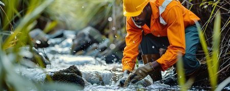 Water resources engineer at a river, preserving lifes essential flow