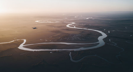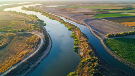 Glimpsing the Glorious River in Sun's Radiance: An Aerial Perspective