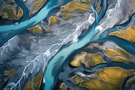 top-down view of intricate river delta patterns, created with generative ai