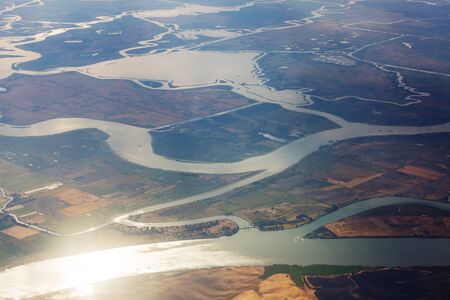 Aerial view on Tataru island, Danube river, Chilia branch Danube Delta, Izmail, Ukraine, Eastern Europe