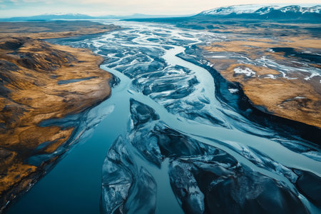 Stunning aerial view of glacial rivers flowing through iceland s majestic landscape