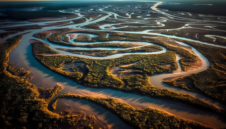 bewildering maze of waterways and tributaries in the amazonas, created with generative ai