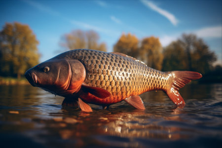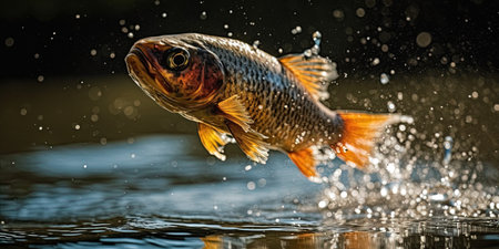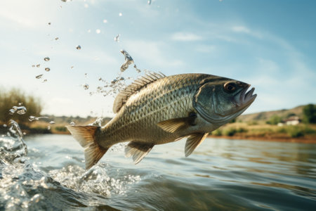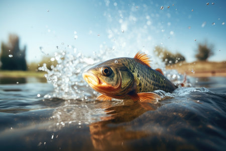 A large fish leaping from water's surface. Generative AI