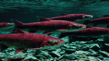 Crimson Wonderland: An Artistic Freeze Frame of Red Fish in a Serene Pond