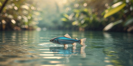 AI Generated. Fish Swimming in Jungle with Soft Lighting Reflections