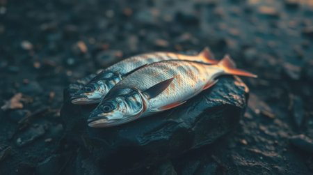AI Generated. Grilling fish on a natural rock in nature