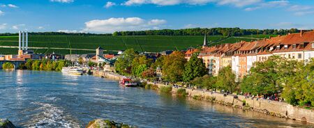 Wuerzburg City Summer River Panorama. Medieval City with famous church towers in Bavaria near Munich