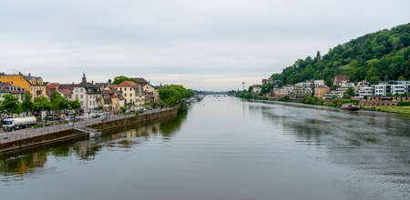riparian city view of Heidelberg in Germany at summer time