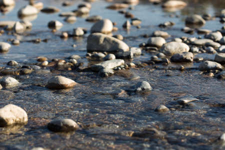 river pebbles with nice sunlight reflections on the water