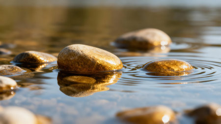 A serene scene featuring smooth stones partially submerged in clear water, creating a tranquil atmosphere perfect for nature lovers and relaxation.