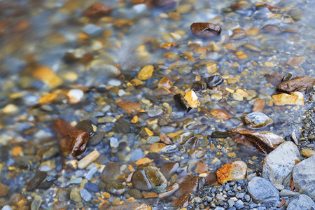 Colorful pebbles in the water. Selective focus.