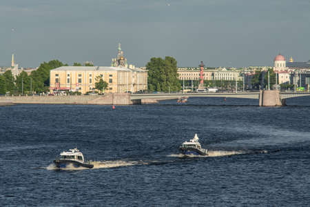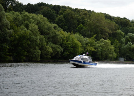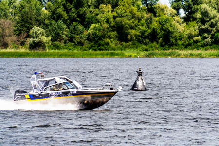 06.30.2019 - Cherkassy, Dnipro River, Ukraine. River Police Boat. Marine Police Force