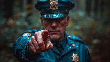 Law enforcement forces in readiness for action, the confident look of a policeman in front of the camera
