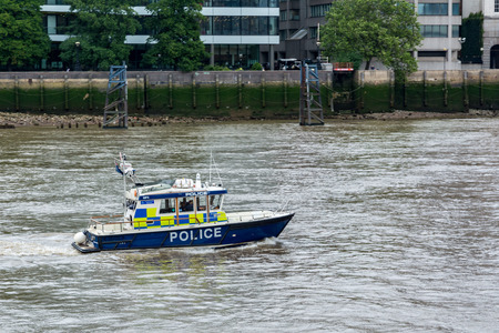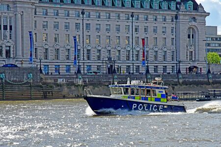 London; England - may 5 2019 : police boat Thames river in the city centre