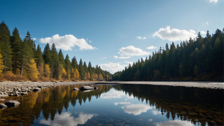The tranquil beauty of a river mirroring the nature around it