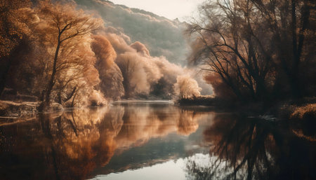 Tranquil scene of nature beauty in autumn generated by artificial intelligence