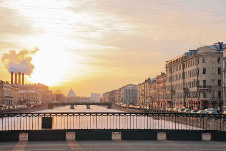 St. Petersburg, urban landscape, Fontanka Embankment at sunset in winter