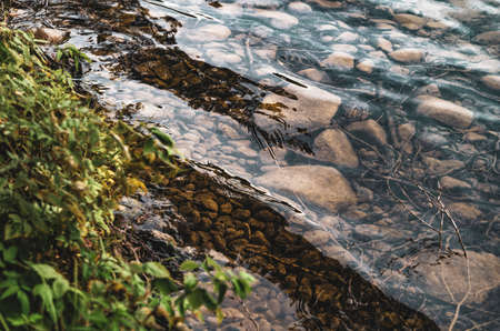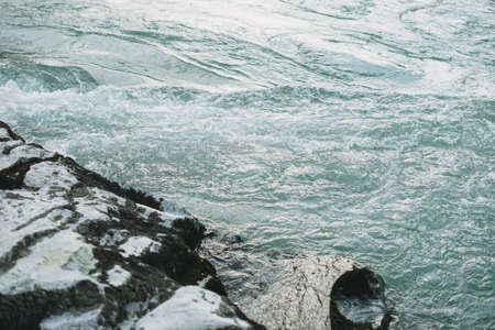 Close up photo of the turquoise mountain river, natural background