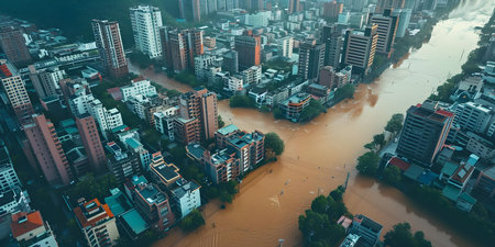 Flooded city streets major flood incident dangerous urban natural disaster thunderstorm emergency river traffic rescue injured people extreme conditions underwater catastrophe hurricane aftermath