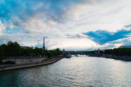 Panoramic view of the River Seine in Paris, France.