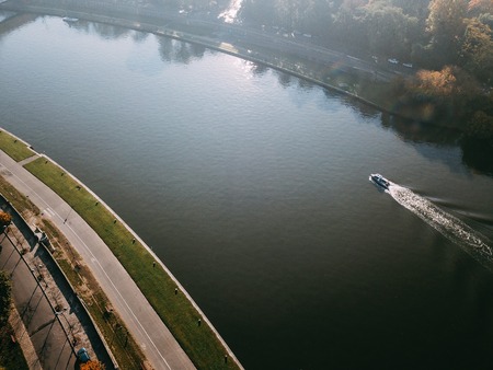 Motor boat floats down the river Wisla