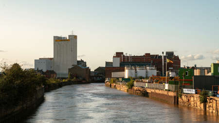 HULL, UNITED KINGDOM - Aug 31, 2019: View upstream along the River Hull from North Bridge in Wincolmlee, Hull.