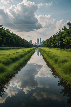A beautiful scenery of the field and the sky reflecting in the river in Bình Thá», Vietnam