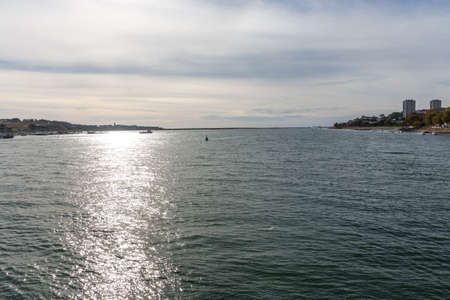 Belém Tower in Lisbon. View from the viewing platform of the sea glistening in the evening sun