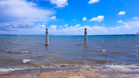 Lisbon symbol in the city centre. Cais das Colunas. Lisbon or Lisboa, Portugal