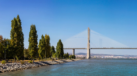 The Vasco da Gama Bridge in Lisbon, Portugal in a summer day