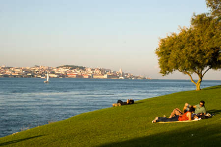 Relaxing at beautiful Tagus River in Lisbon aka Tejo