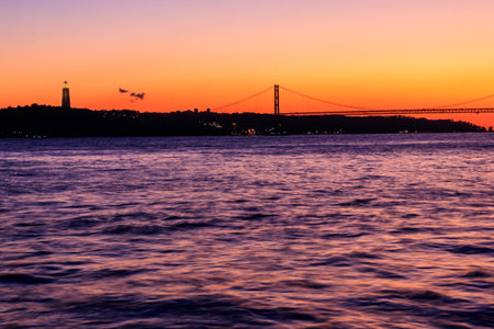 Sunset view over the Tagus river in Lisbon, Portugal