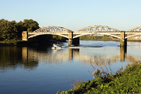 Barnes Railway Bridge located in the London Borough of Richmond upon Thames and the London Borough of Hounslow. It crosses the River Thames in London in a northwest to southeast direction at Barnes