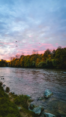 A beautiful view of an autumn landscape with a river in Pittsburgh forest