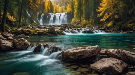 AI Generated. Serene Waterfall Cascading into Crystal Clear Pool