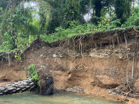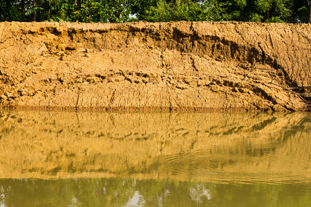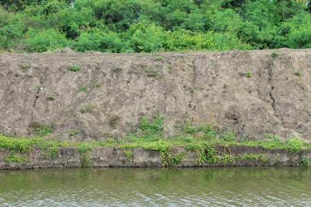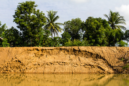 Soil erosion or landslide on the lake in the rainy season at Muadzam Shah, Malaysia.