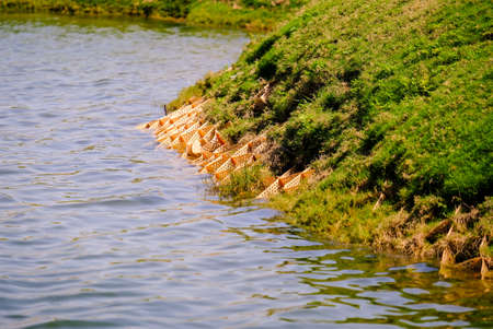 geobags sandbags to protect riverbank from erosion and flooding, Bangladesh, Padma River