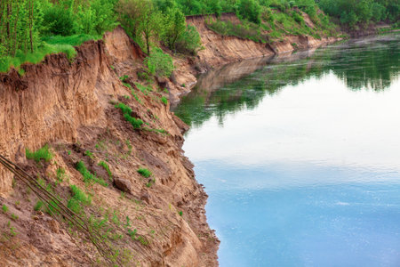 Clay coastal cliff , wilderness nature and flowing river