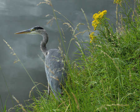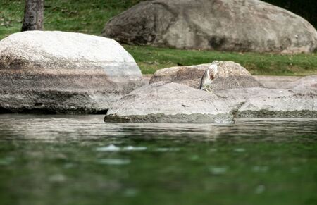 Great blue heron in the lake , Jeddah - Saudi arabia