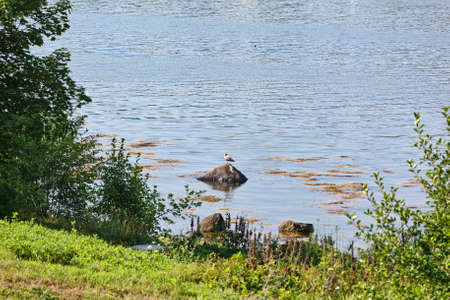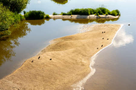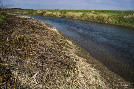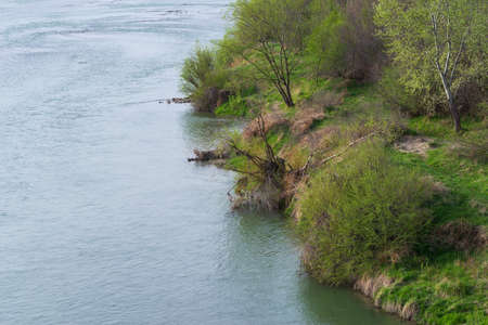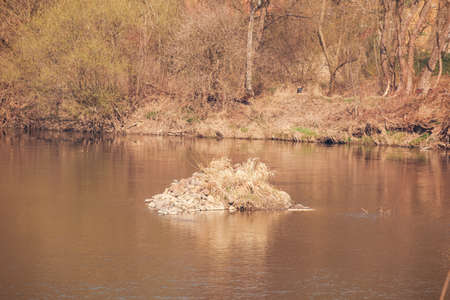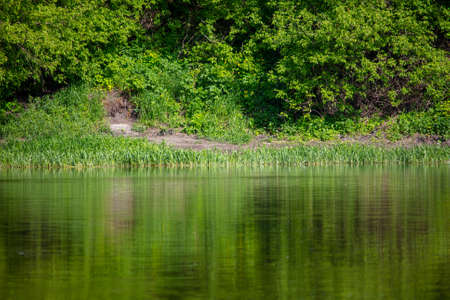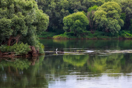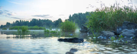 Wide river. Eastern european background with copy space for text or lettering. Ideal for fishing and rafting. View through the eyes of a tourist