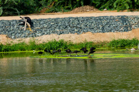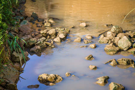The river is shallow and very polluted. There is a lot of garbage and waste in the pond. In the river, even tires from cars are thrown out.