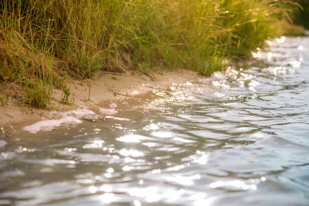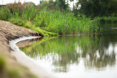 Beautiful summer landscape with lake and grass. Soft focus, shallow DOF.